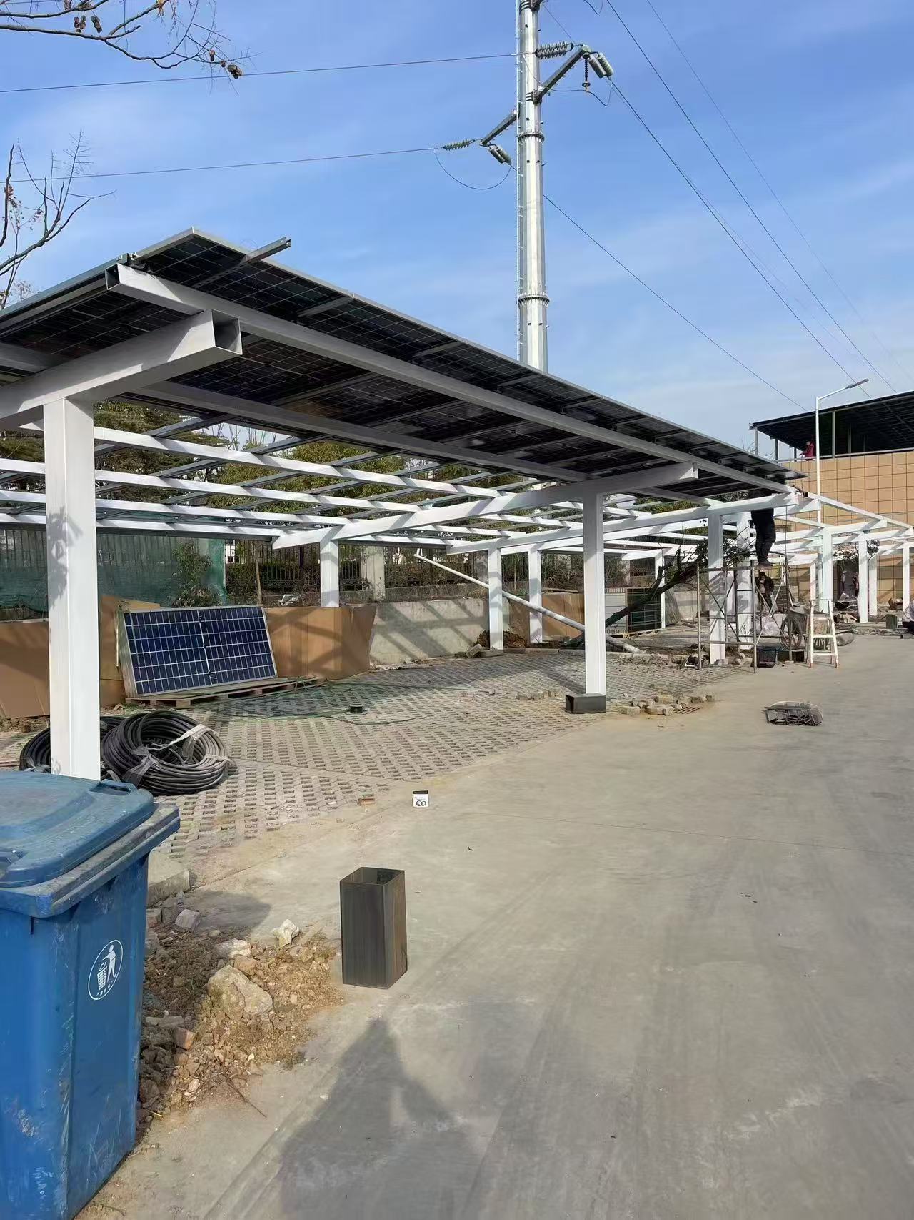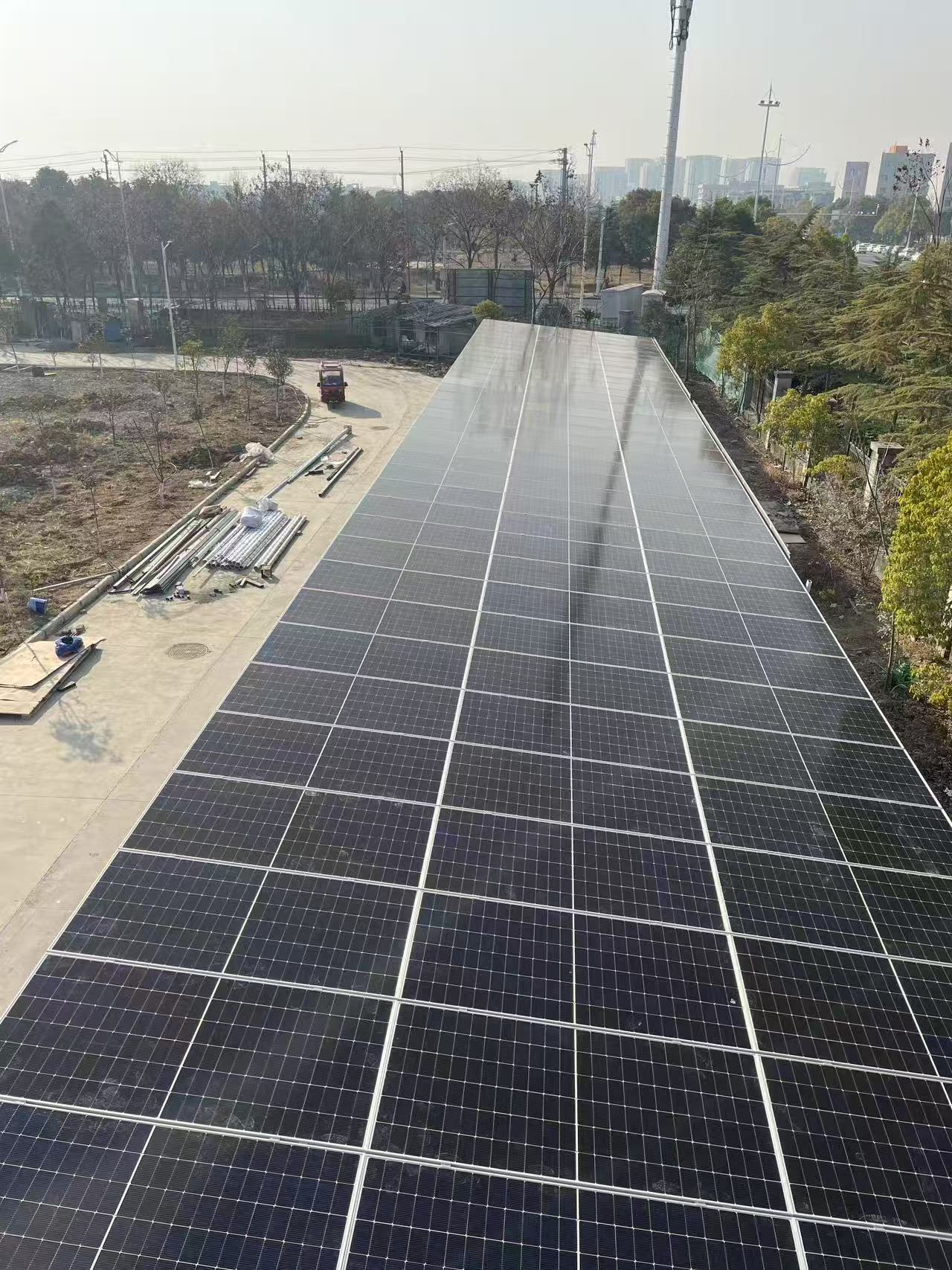 The installation of the photovoltaic carport not only beautifies the park environment, but more importantly, it marks a solid step forward for the park in utilizing renewable energy and reducing carbon emissions. The following are several significant benefits of factories adopting solar power generation:Energy conservation, emission reduction, and environmental protection: Solar energy, as a clean and renewable energy source, significantly reduces the consumption of fossil fuels and effectively lowers greenhouse gas emissions, contributing to the fight against global climate change.Reducing energy costs: In the long run, the operating costs of solar power generation systems are much lower than traditional electricity supply, especially in the context of continuously rising electricity bills. This advantage is even more prominent, which helps companies save operating costs and enhance competitiveness.Enhancing corporate image: Actively adopting green energy technologies and demonstrating the company's social responsibility for environmental protection can help enhance brand image and attract more consumers and partners who are concerned about sustainable development.Energy self-sufficiency: The construction of photovoltaic carports has enabled enterprises to achieve energy self-sufficiency to a certain extent, enhancing the safety and stability of energy supply, especially in the event of power shortages or emergencies, which can better reflect its value.Promoting technological innovation and industrial upgrading: The implementation of photovoltaic projects has facilitated the research and application of related technologies, promoted the deep integration of photovoltaic industry and manufacturing industry, and provided new impetus for industrial upgrading and high-quality development.The successful practice of Hubei Optical Networking Intelligent Technology Co., Ltd. is not only another verification of its own technical strength and service level, but also a strong support for promoting social green transformation and achieving the goal of "carbon neutrality". In the future, optical networking companies will continue to deeply cultivate the photovoltaic field, explore more innovative applications, work together with more partners, and jointly open a new chapter of green development.